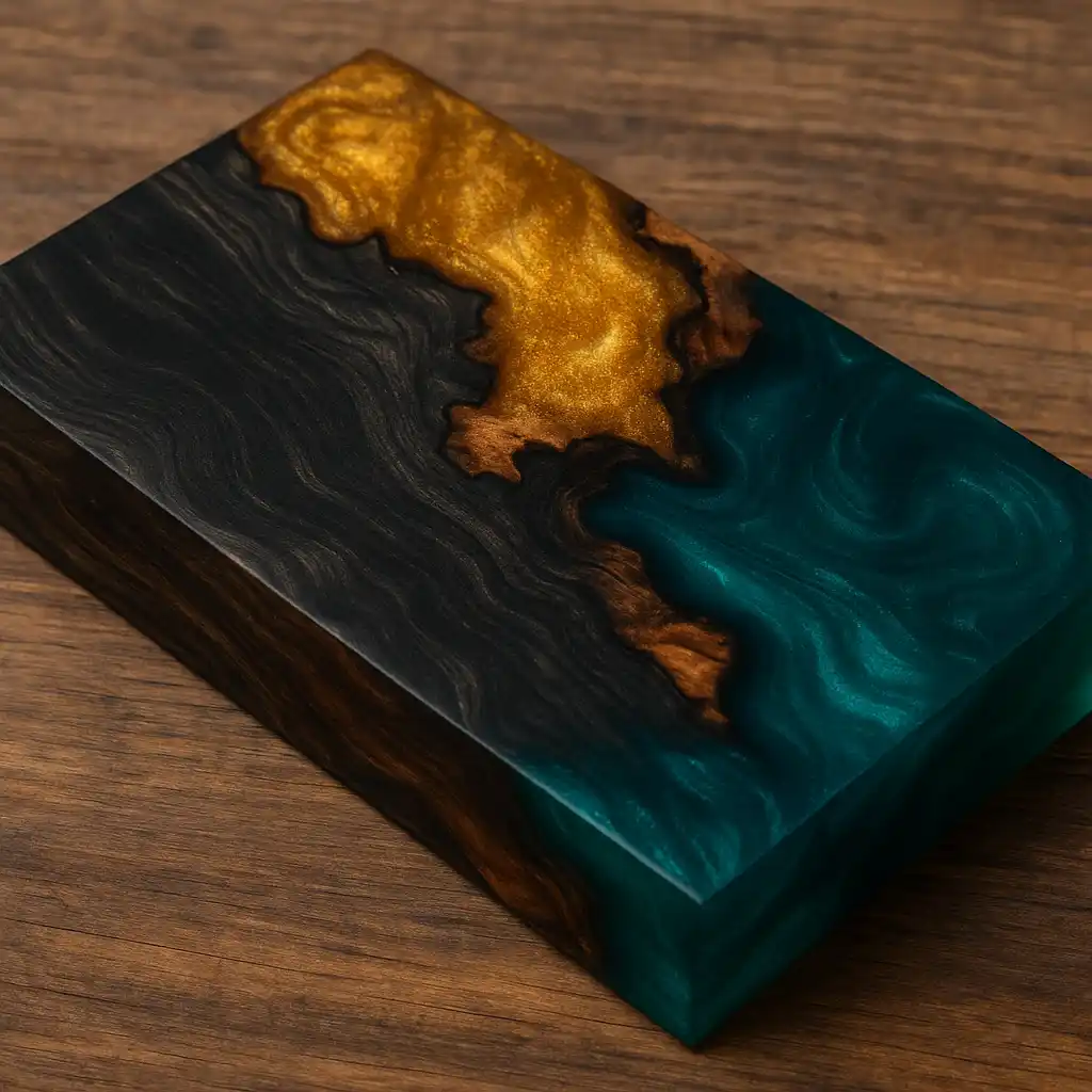 A união entre madeiras raras e resinas coloridas tem conquistado cada vez mais espaço no artesanato contemporâneo, ganhando destaque tanto