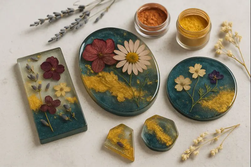 Como combinar flores secas e pigmentos metálicos em suas criações de resina