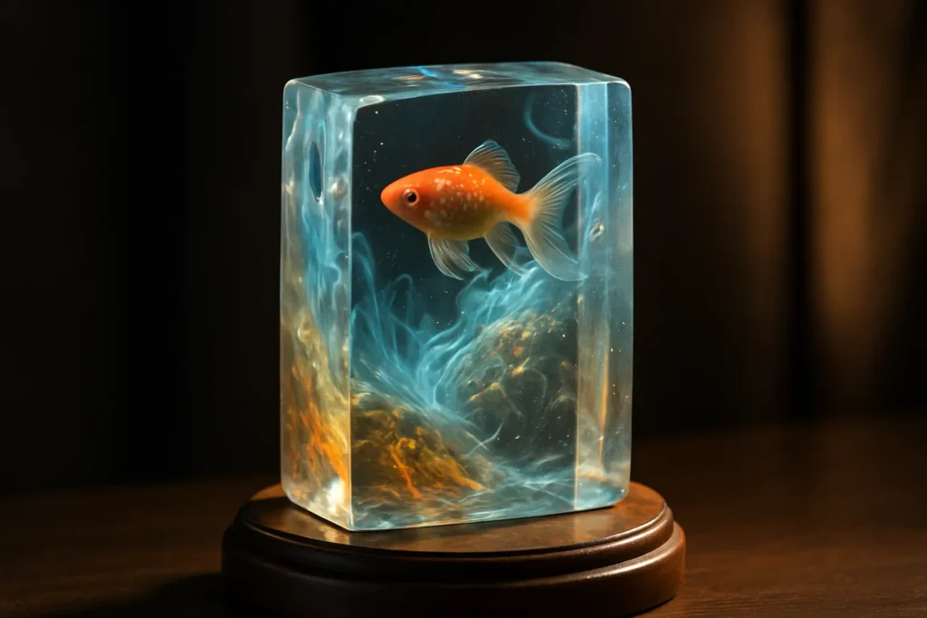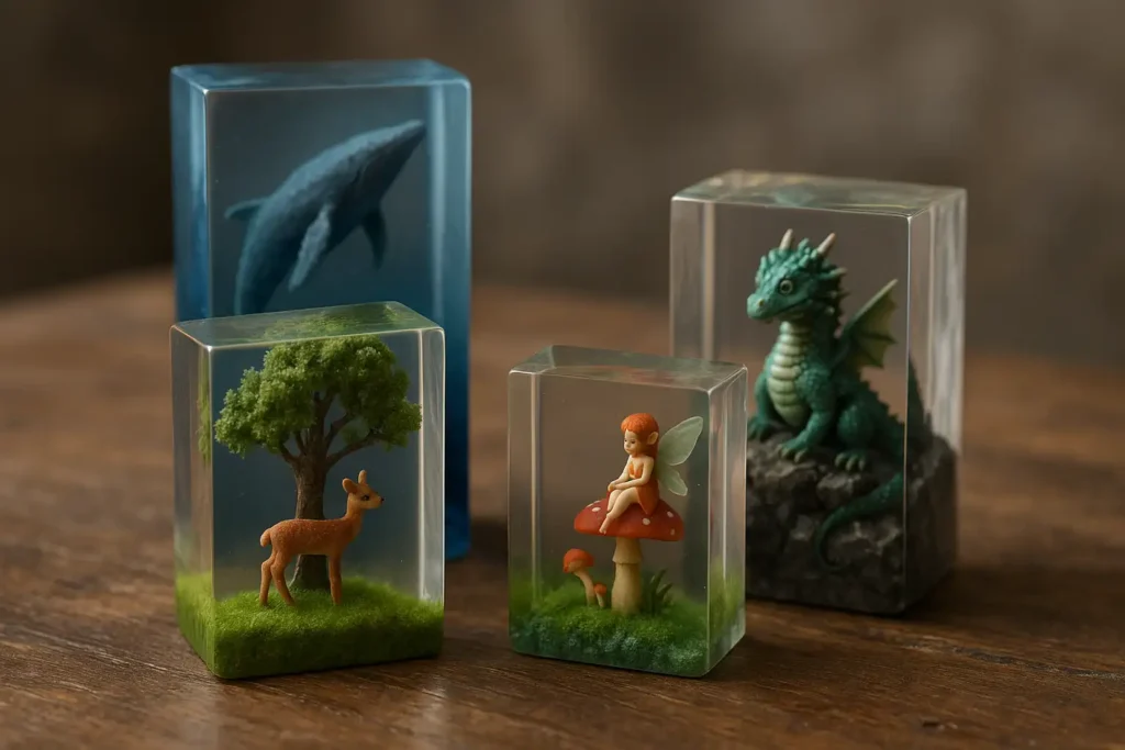 As esculturas em resina transparente possuem um encanto único: elas brincam com a luz, revelam profundidade e exibem detalhes delicados